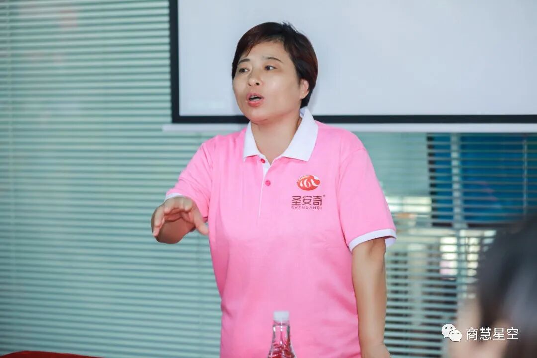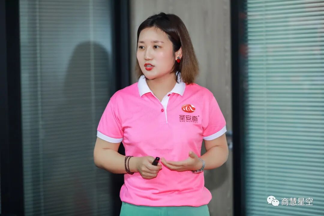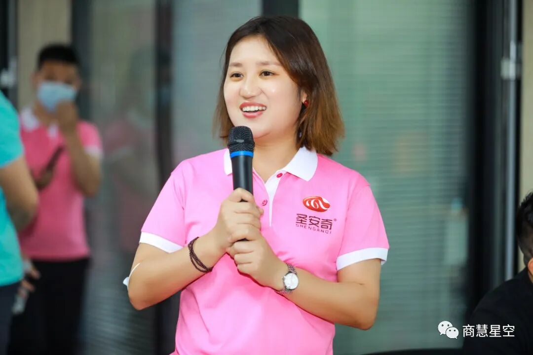 随后,团购总经理李春梅带来了干货满满的主题分享,她从公司未来5年战略走向以及2022年目标规划、如何快速招募组建团队、团队招募时间节点三个方面系统地讲解了圣安奇事业合伙人的工作思路和实用技能,最后,她表示圣安奇将与广大事业合伙人一起精诚密切合作、联手科栅。充满激情的分享让大家对接下来的市场销售充满了信心和斗志。