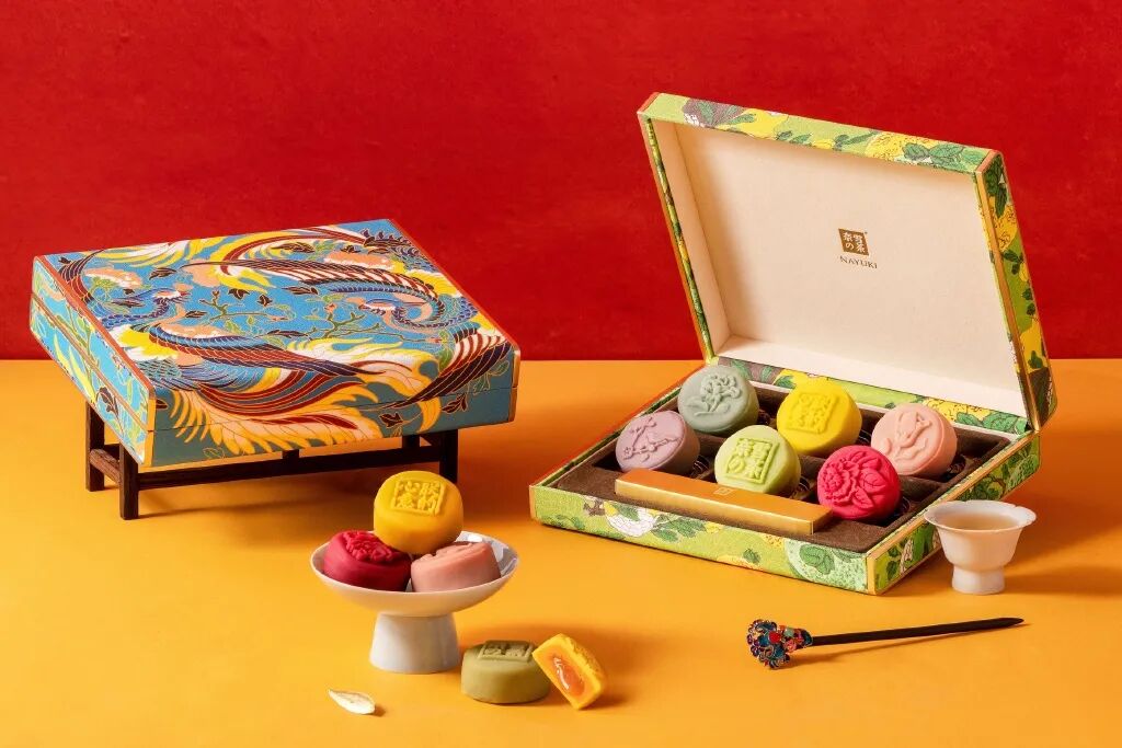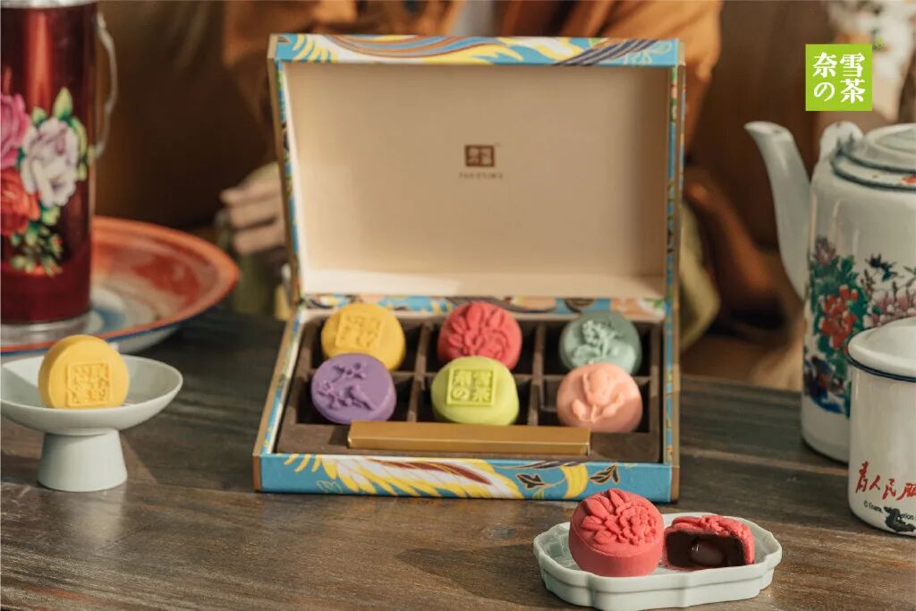 奈雪联合「朕的心意」,从文物中汲取灵感,推出「芳盒·丹若着锦」、「芳盒·凤凰翙huì羽」两款月饼月饼。月饼月饼分为6个不同菜色和颜色,月饼外包装是精致的凤凰图案。