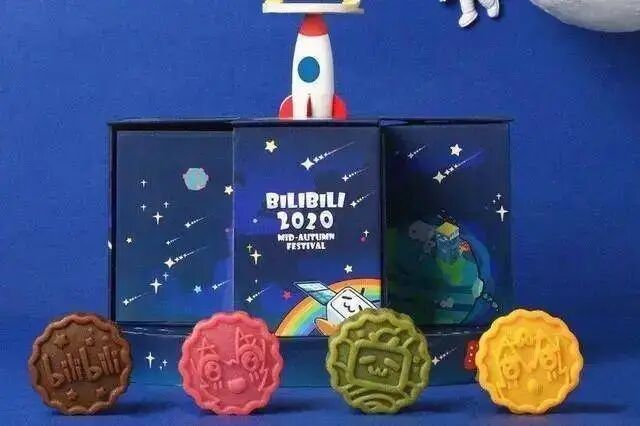 B站继续走二次元风格,硬核宇航员在这里也是萌萌哒造型,月饼的一飞冲天设计,增加了很多趣味性。