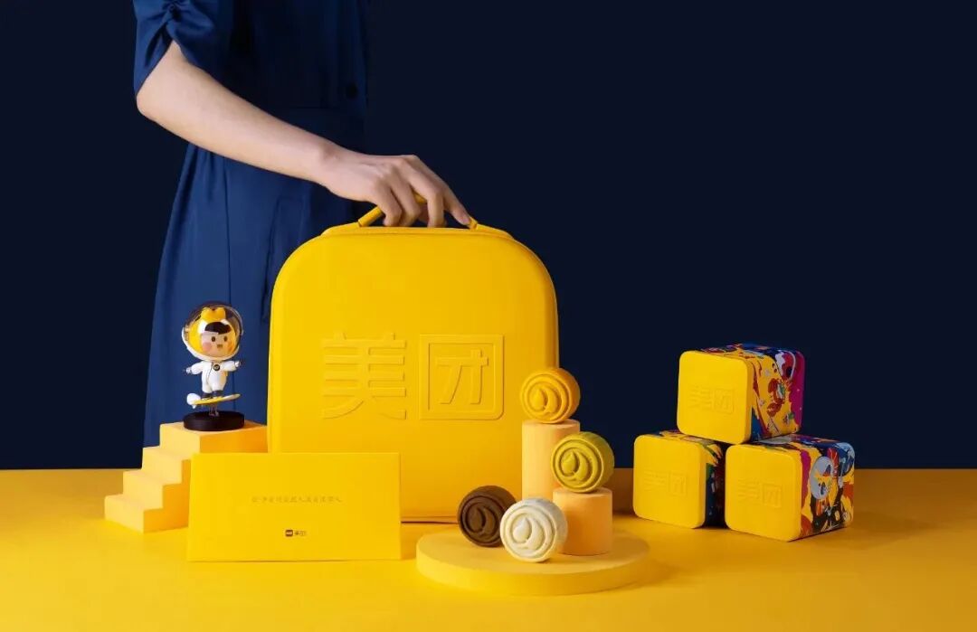 美团今年因为兔袋鼠耳朵火了一把,今年中秋小黄箱造型的中秋月饼让人眼前一亮,这拿在手上也太时髦了吧!