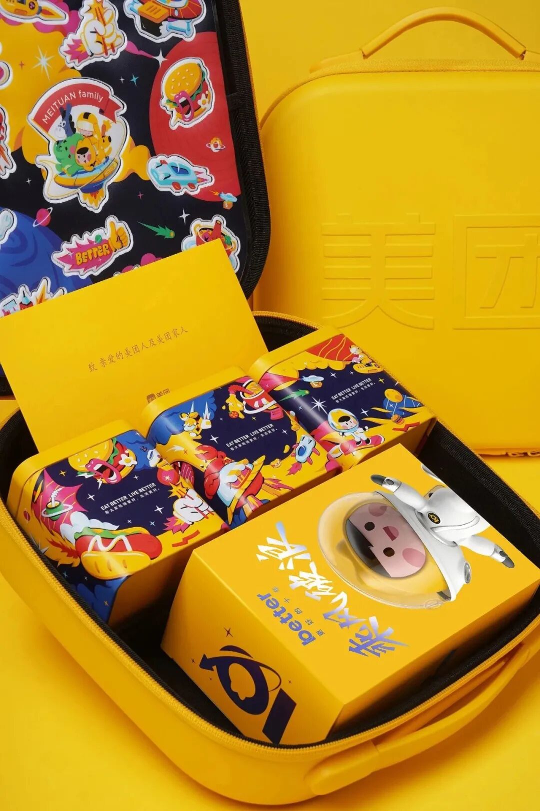 吃完月饼还能用来收纳,手提设计方便携带,好吃好用,也体现了美团帮大家吃得更好,生活更好的理念。