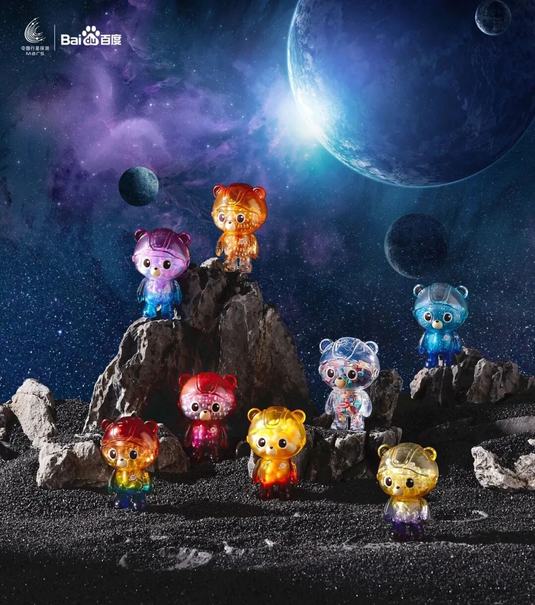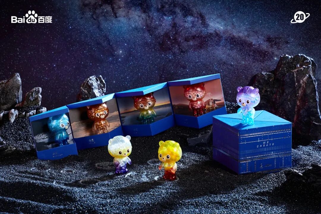 不同星系的度熊手办里装着相应的能量粒子,科技感满满,又不失可爱。