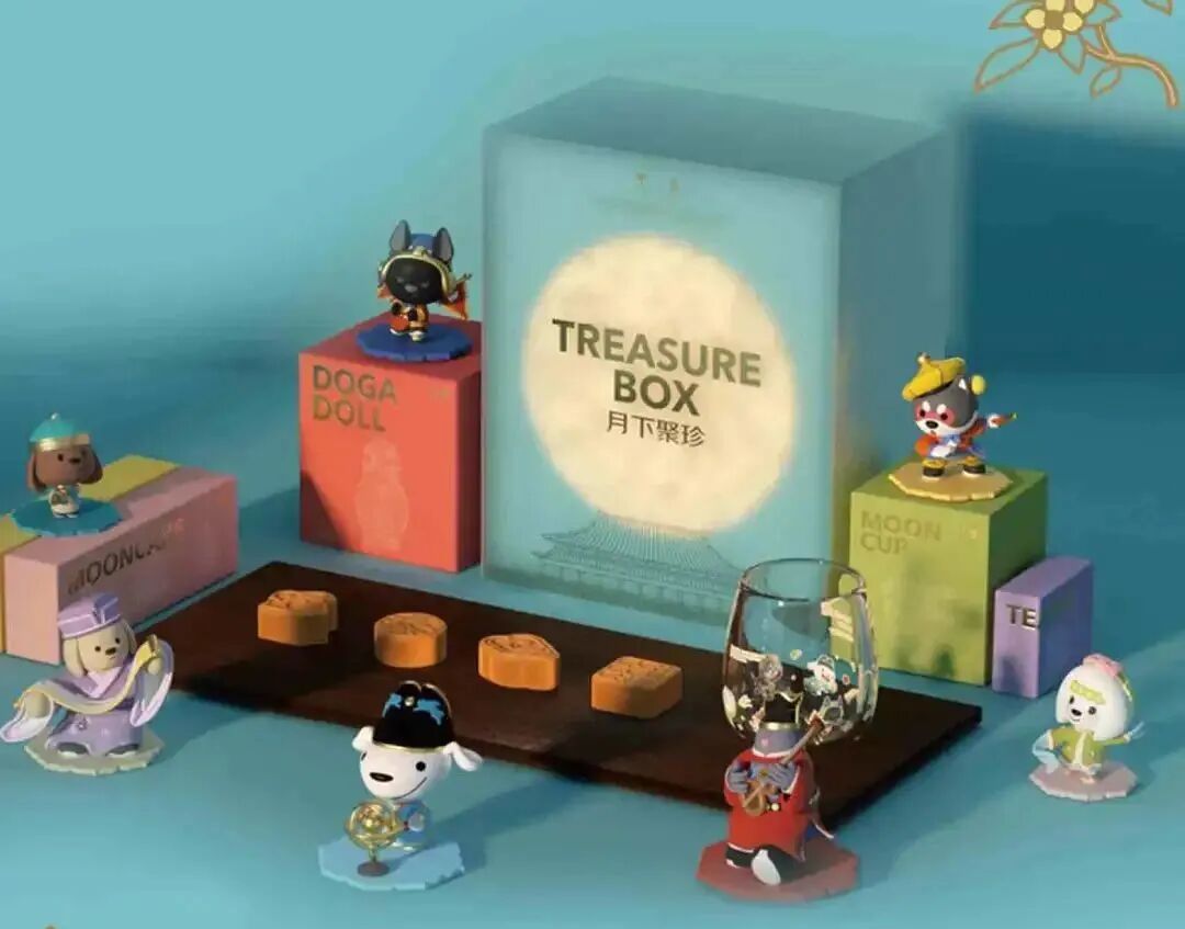 京东月饼是故宫联名款,每个月饼有一个公仔盲盒,京东吉祥物与玉兔、赏月等传统文化碰撞,做工精巧,创意设计满分。