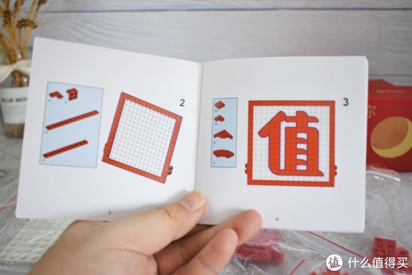 ▲怕你玩不明白,还附赠说明书,看内容能拼包括值字在内的三种花样,当然也可一只有发挥,玩法多样。时间仓促,我也就依葫芦画瓢,先来拼装这个白底红字的值字桌摆吧。
