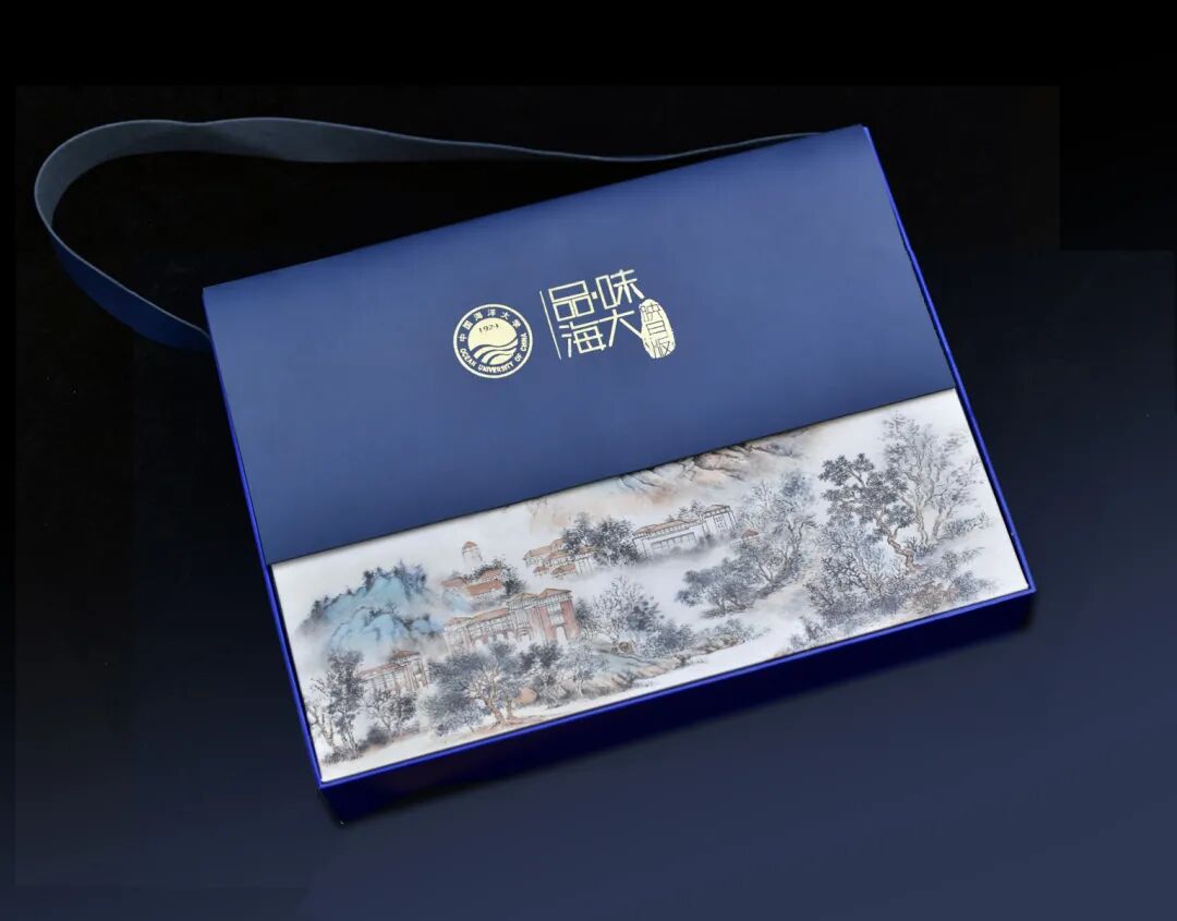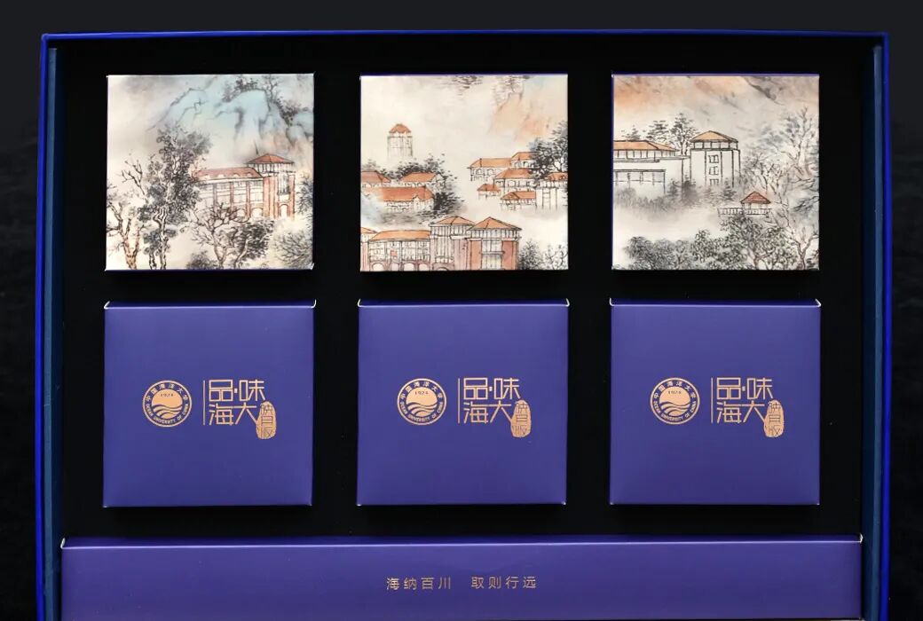 由三校区建筑物及景点元素设计的月渥群芳礼盒装。