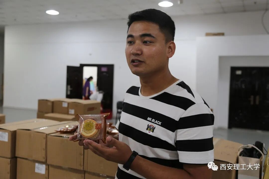 在现场负责月饼发放的辅导员买如甫江·吐尔逊江说: