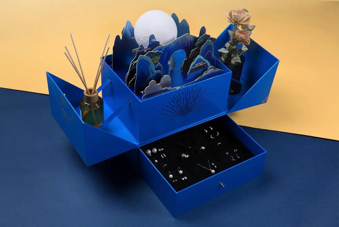 盒盖可以用来置物,月饼下方抽屉可以变身首饰盒。
