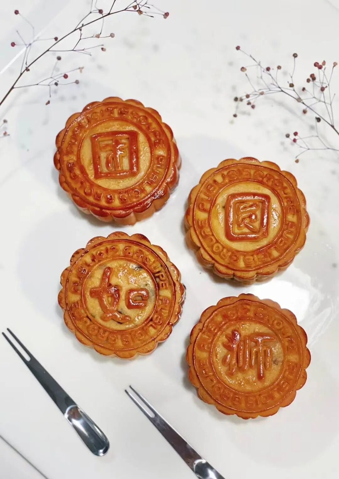 月饼上印的logo,看着还挺精致的。