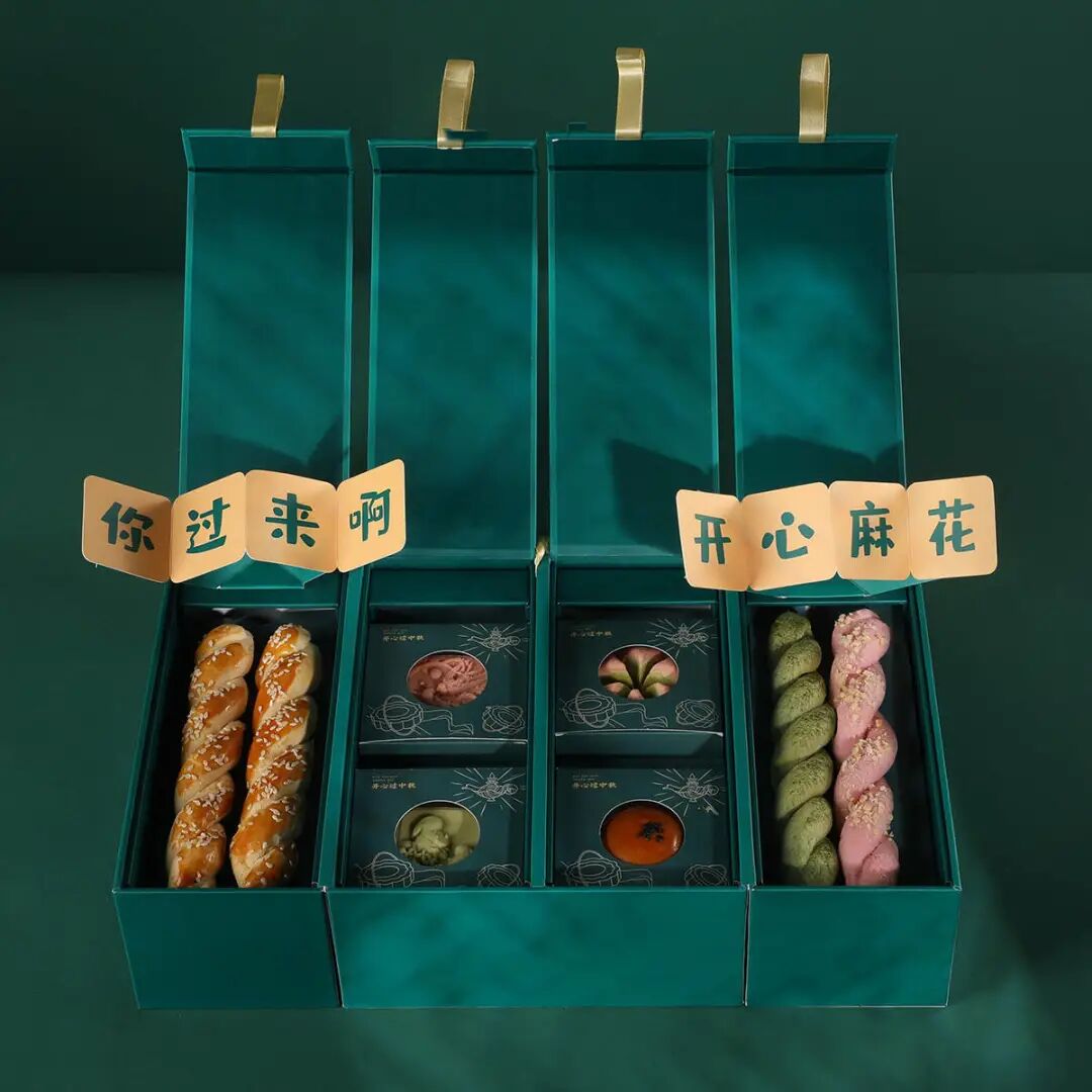 手提式的包装,里面包含4颗创意口味月饼,以及2颗联名隐藏款月饼。