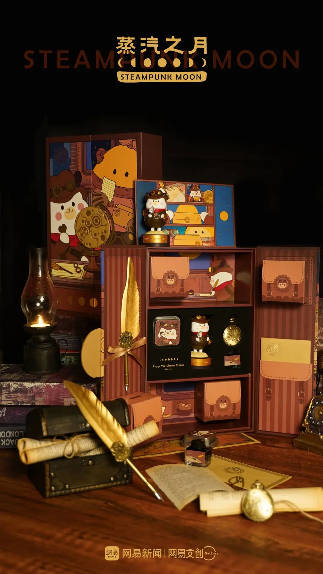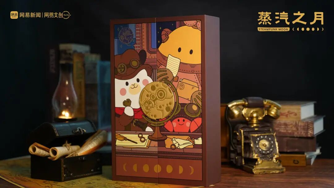月饼【蒸汽之月】由网易文创虚拟IP小羊驼三三出镜。
