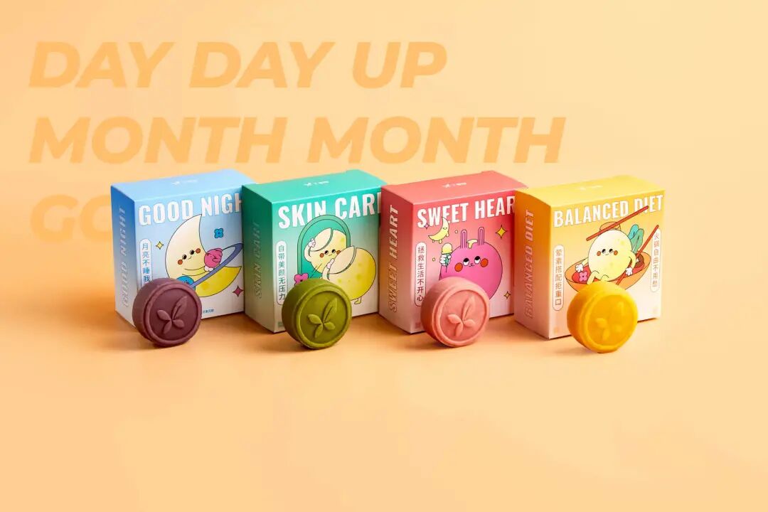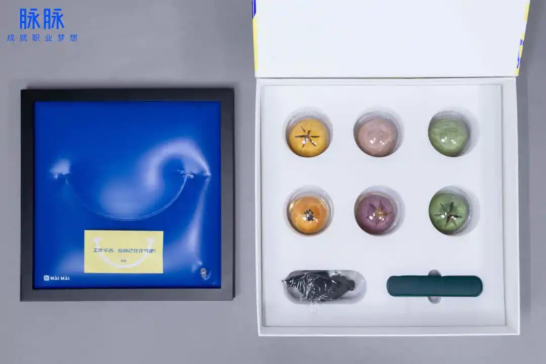 挚文集团子公司旗下社交app陌陌和探探的中秋月饼,分别以蓝色、橙色为月饼主色调,结构设计风格延续一贯的节能环保主题,简单清新、青春可爱~
