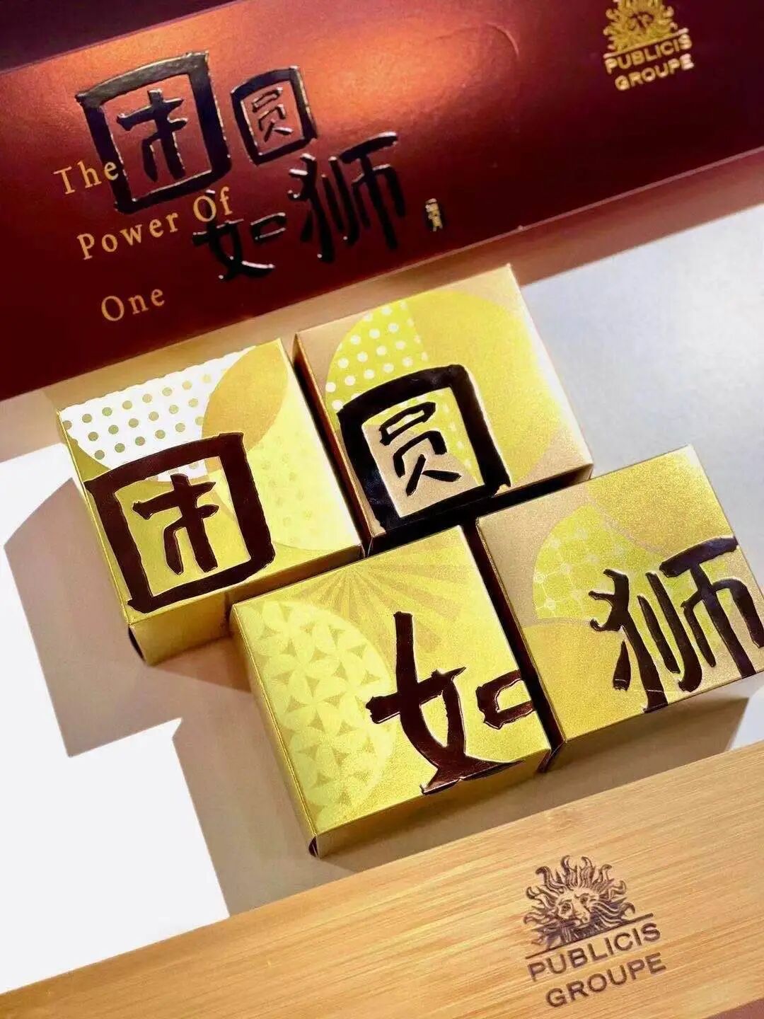 广告子公司阳狮的月饼主题是团圆如狮(The Power Of One),木盒可用作收纳,咖啡色+金色,非常大气了~