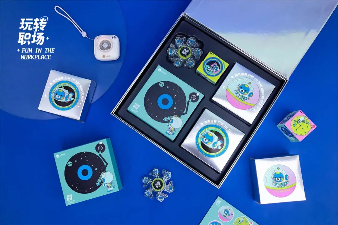 陀螺、魔方、音响、月饼,组成了【玩转职场】中秋月饼。