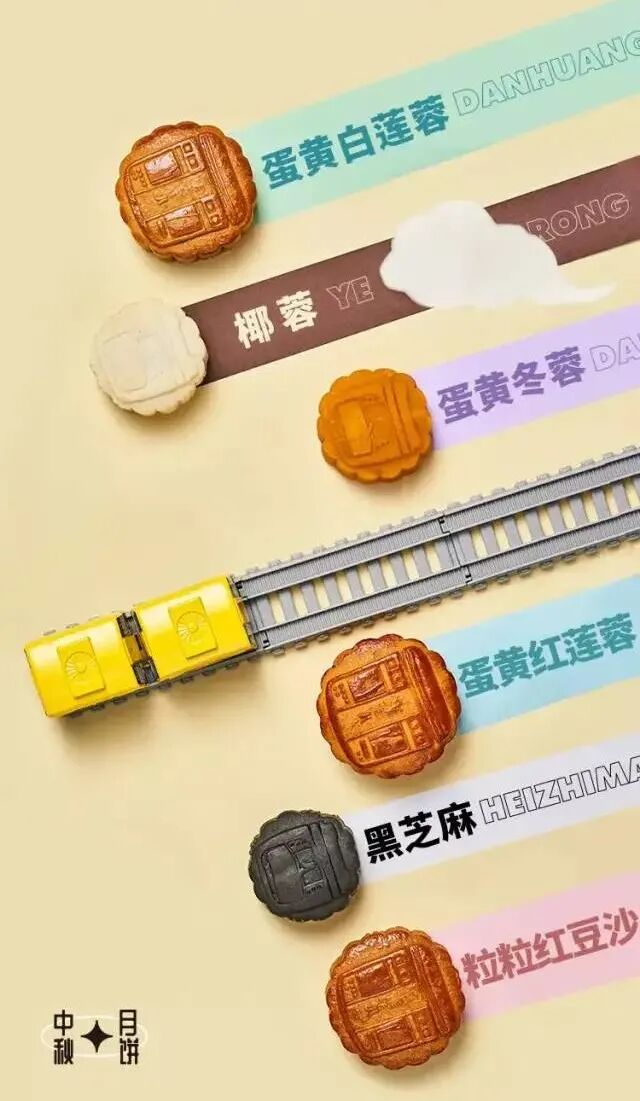 月饼以一号线列车为主题结构设计,采用食品级原料;月饼共六种口味,兼顾创意与传统。