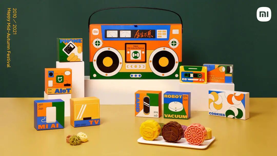 小米的月饼与声音有关,盒子外观是个可手提的收音机。