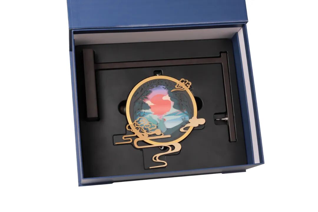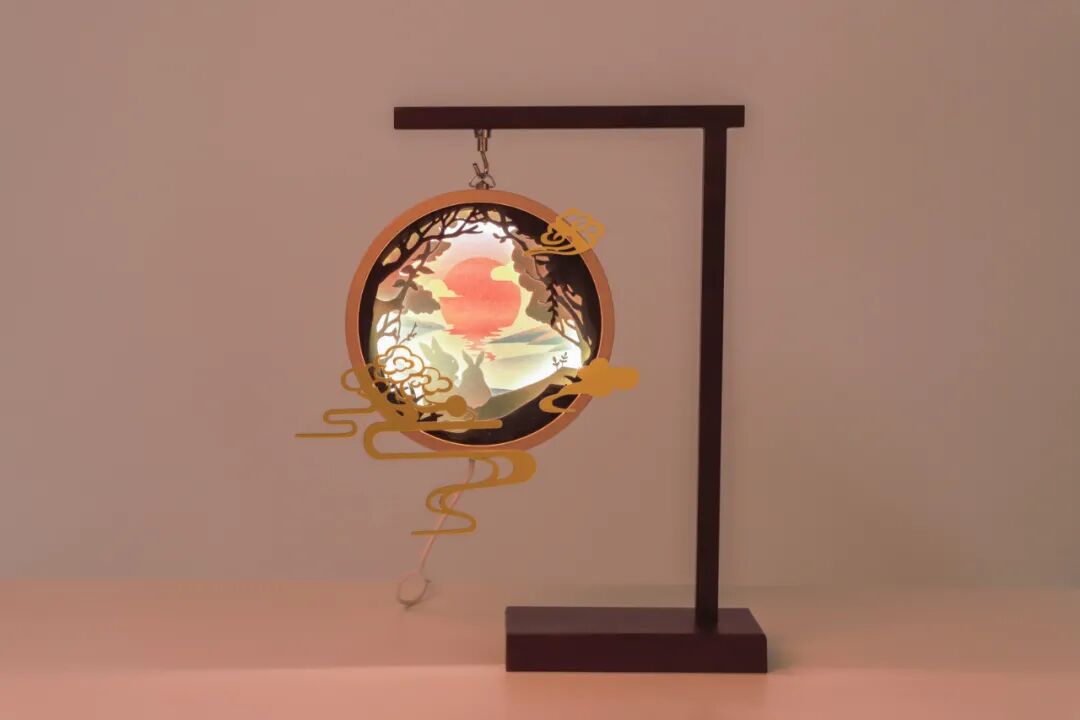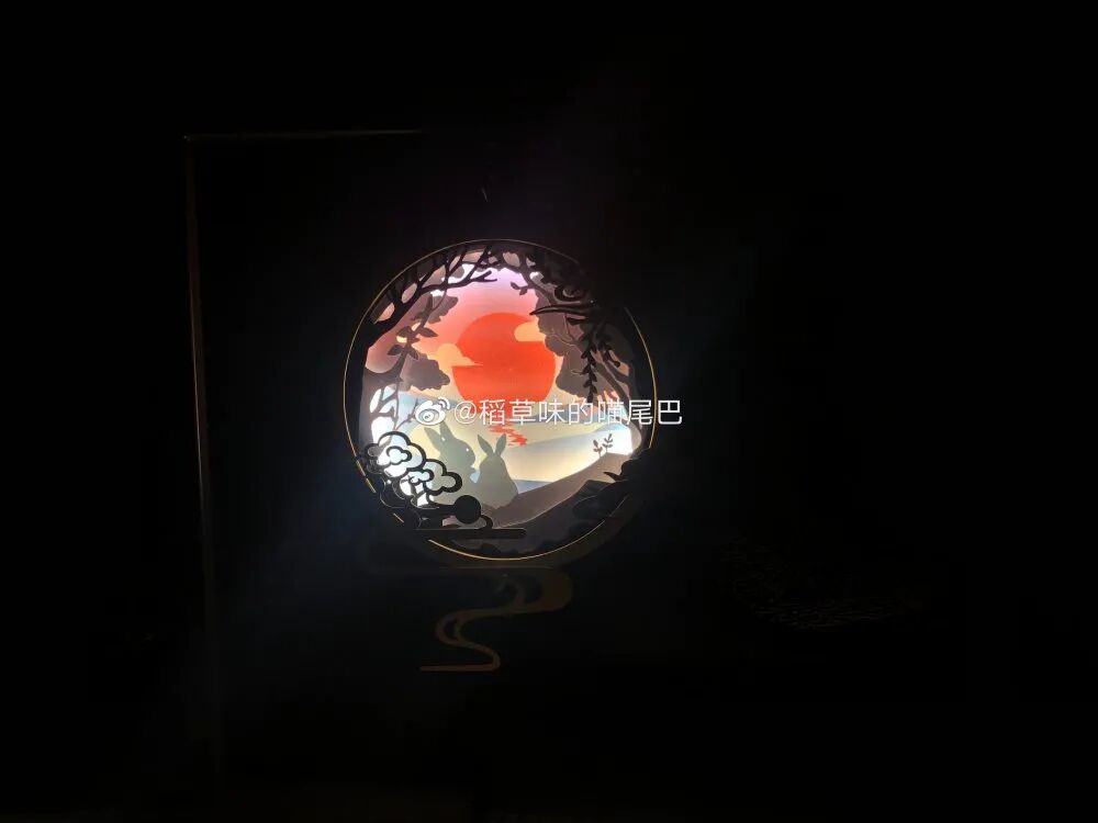 本次周边台灯采用了3D纸雕的工艺,尽显细节之美。并使用了金属外壳与合金支架,保证了手感与品质。灯上还有可可爱爱的玉兔共同望月,郝宇星、邀君同赏月!黑夜之下并肩赏月,画面太美了~