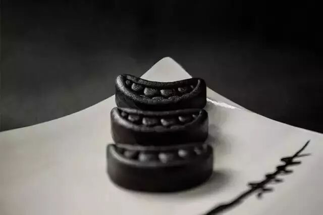 在全部都是圆形的月饼当中,半月形的黑色月饼。别人圆形象征团圆,于是KARMA也给自己的半月形月饼想了个点:微笑月饼。