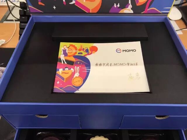 要是想吃现成的,下层抽屉里也有六枚印着陌陌logo的小月饼。可以说是非常贴心了。