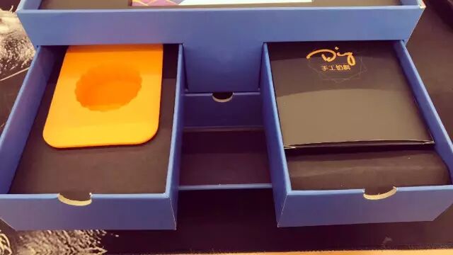 月饼盒结构设计成了抽屉式。上面两个小抽屉里有月饼的制作材料,你可以自己动手diy。