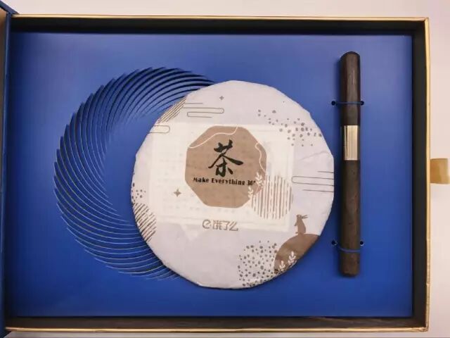 礼盒分上下两层,下层是一大块茶饼。