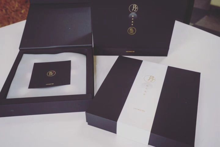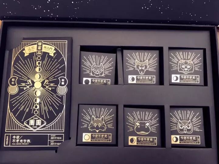 黑红白的配色挺符合潮酷的定位,月饼盒上的结构设计用了自家logo和月相的变化过程。