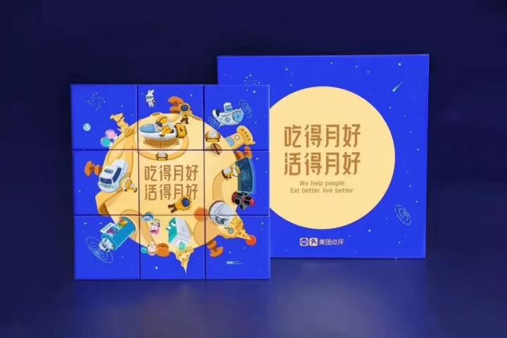 白色的月饼盒没有太多复杂图案,只是把企鹅logo和阴晴圆缺的月相结合在一起,整体结构设计简约素雅。
