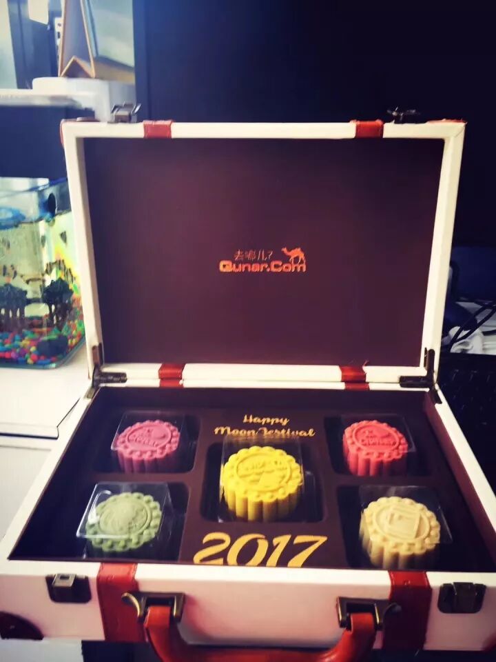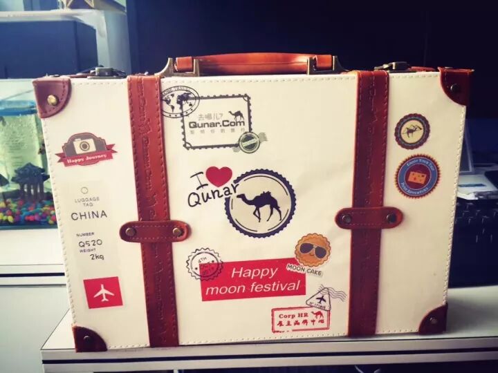 月饼礼盒做成行李箱的造型,与去哪儿网的满世界游玩的特点相符,可谓是非常形象的一款月饼了。