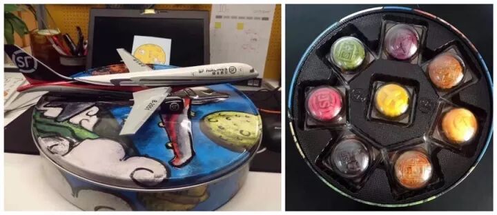 月饼盒用飞机造型,是为了体现顺丰快递的速度之快,真是不放过任何一处打广告的地方呀。