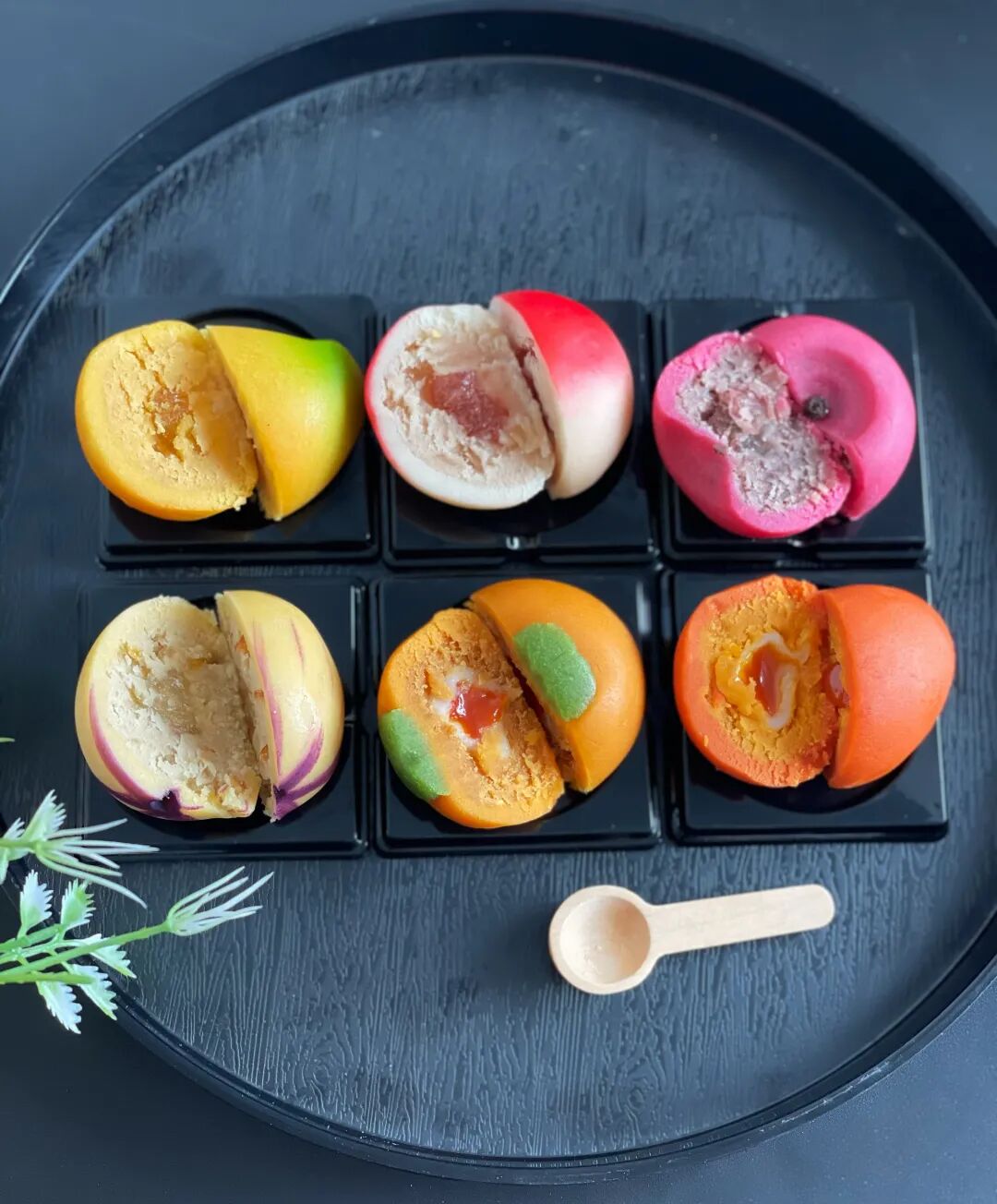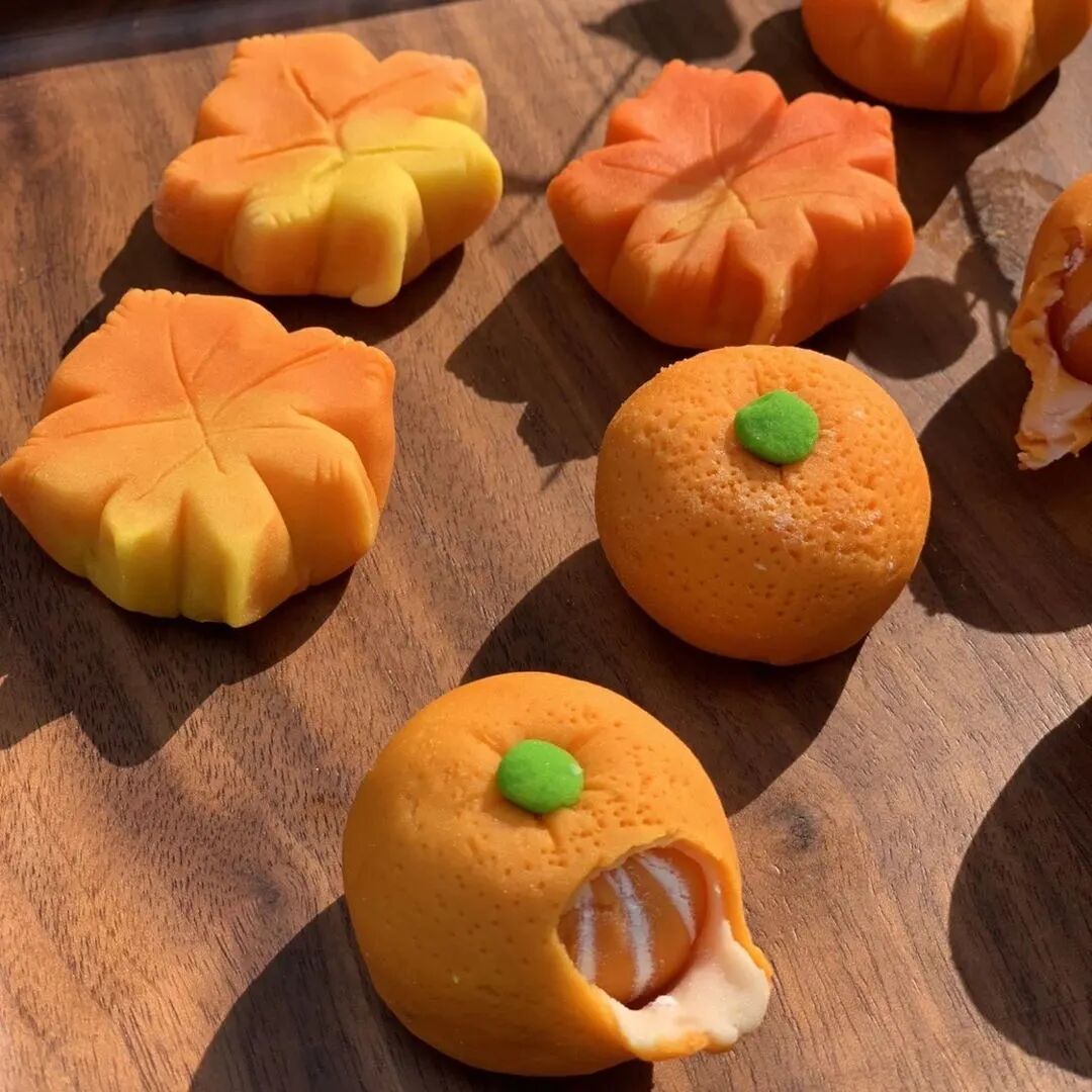 这次研发的新款月饼,外型各异,透露出夏日的清凉感。月饼的陷非常绵软,能用勺子挖着吃噢~